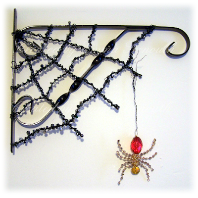 And this is the gift ive made for mum. Its for the garden, to go on the shed i thought, a giant 4" beaded spider and a web for him built around a hanging basket bracket, ive added more light catching beads into the web to glint in the light. Just for something a bit different.